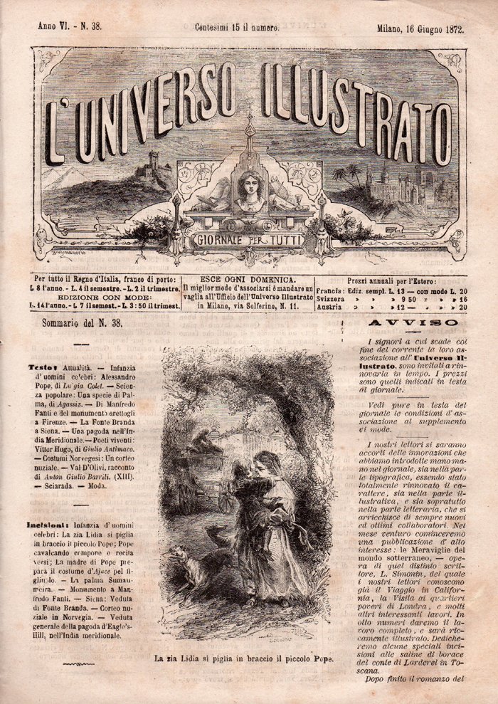 L'Universo Illustrato, giornale per tutti. Anno VI - N. 38, Milano, 16 Giugno 1872