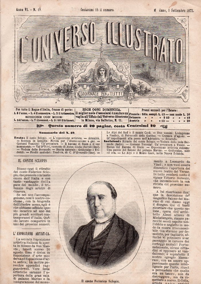 L'Universo Illustrato, giornale per tutti. Anno VI - N. 49, Milano, 1 Settembre 1872