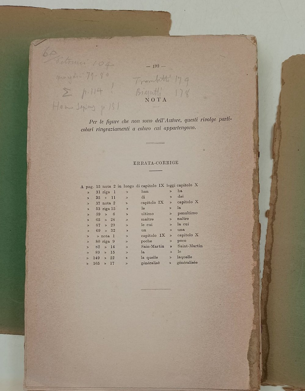 In 8', br. ed., pp. 192, XIII tavv. in n. f.t.; esemplare vissuto, parzialmente sciolto, dorso e margini della cop.bruniti, dorso usurato, piatti staccati, appunti  al piatto ant. e all'ultima p., pp. interne pulite a fruibili. ***Due to bureaucratic reasons, books dated over 70 years old cannot be immediately exported, please contact us before placing the order.***