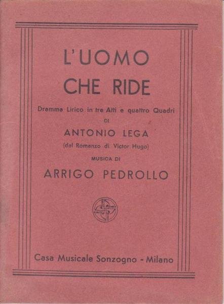 L'UOMO CHE RIDE: DRAMMA LIRICO IN TRE ATTI (QUATTRO QUADRI) DI ANTONIO LEGA DAL ROMANZO DI VICTOR HUGO. LIBRETTO D'OPERA.