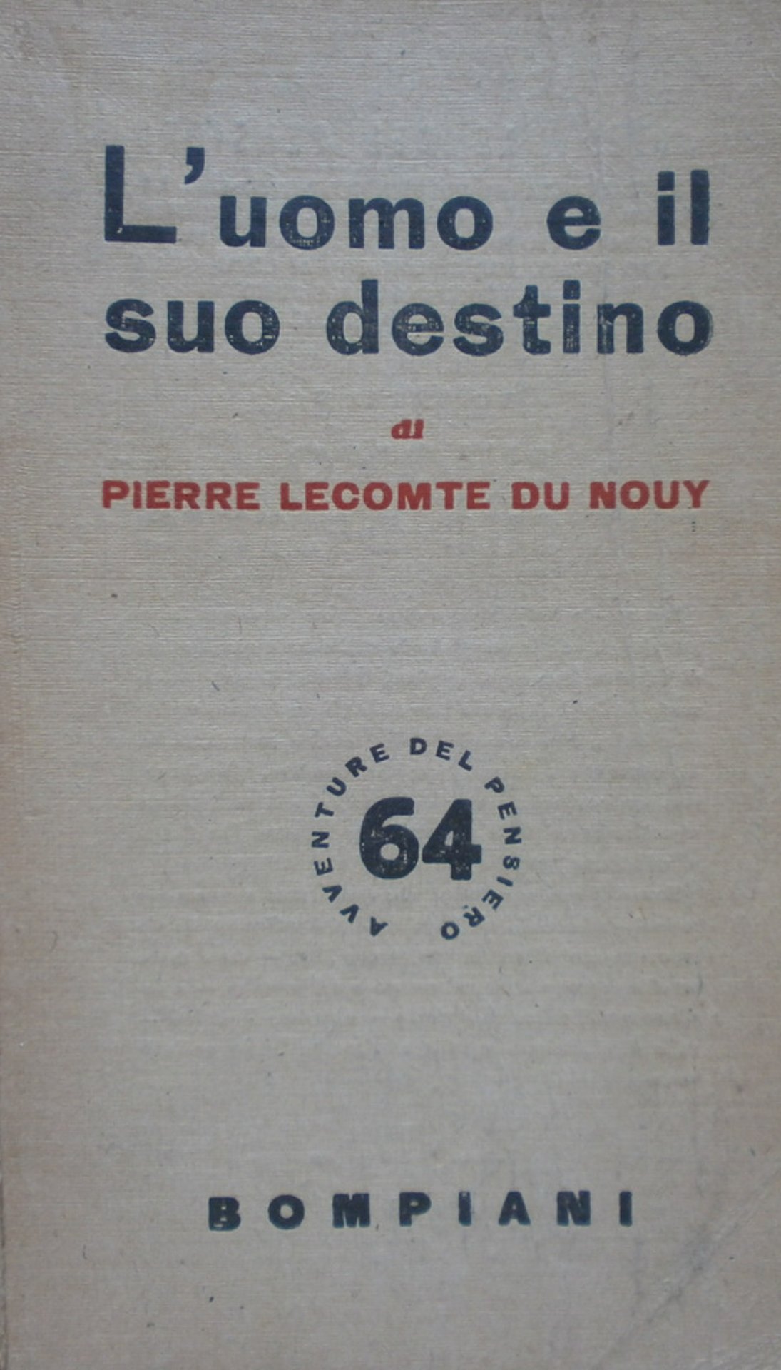 L'uomo e il suo destino. Lecomte du Nouy. Bompiani 1949