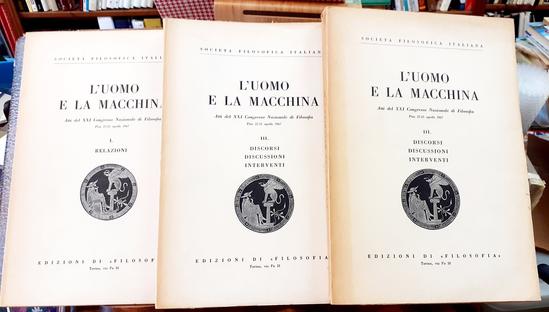 L'UOMO E LA MACCHINA. Atti del XXI Congresso Nazionale di Filosofia. Pisa 22-25 aprile 1967. Vol. I: RELAZIONI., Vol. II: COMUNICAZIONI., Vol. III: DISCORSI-DISCUSSIONI-INTERVENTI.