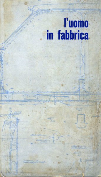 In the publication L’uomo in fabbrica the automobile manufacturer Fiat expresses its affinity with its employees working on the shop floor, its focus on the importance of human workforce in factory work. A technical drawing of the Fiat 128 model is printed on the dust jacket. After a short introduction the book contains only photographs. A compilation of thumbnails, bleeding images and large images bordered with white bars show the reader a day at work in the factory. The variety in image size and the mixture of black & white and color photographs generate a dynamic flow in the visual narrative. The story begins with the employees going to work and it ends when they leave the Fiat complex; in addition, the storyline shows the fabrication of the Fiat 128. Captain of industry of the Fiat Group, Umberto Agnelli, is portrayed on the shop floor and wrote an introductory text. — Testi: Agnelli Umberto. F.to: 16x28; pagg. 96; 92 COL e 12 BN; rileg. rigida con sovracopertaq. Editore: Direzione informazioni del Gruppo Fiat, Torino, 1971.