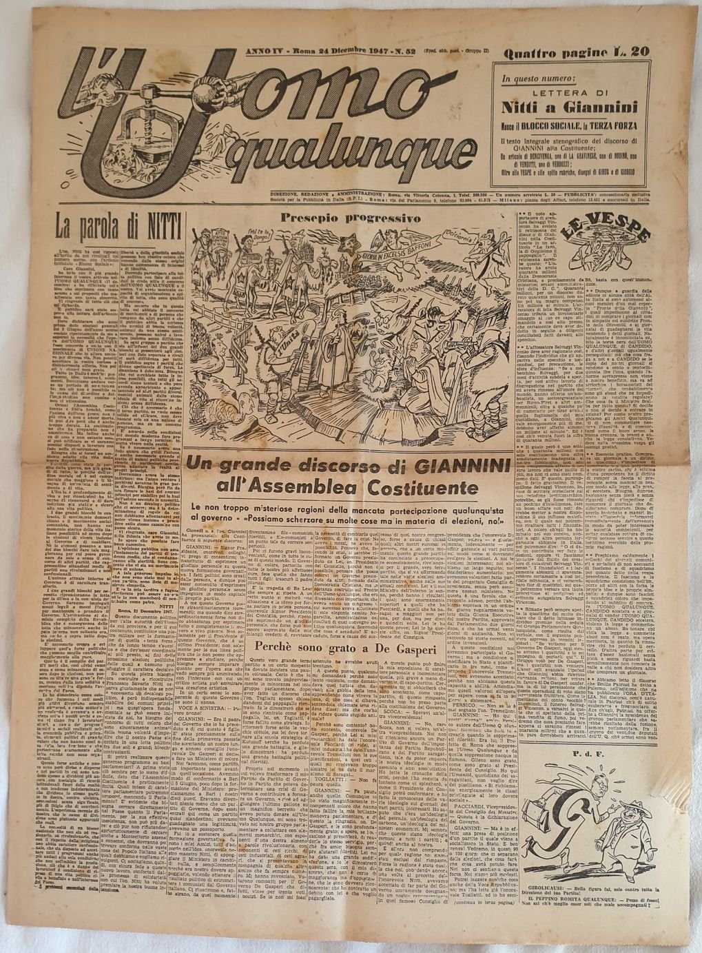 L'UOMO QUALUNQUE ANNO IV ROMA 24 DICEMBRE 1947 - N. 52