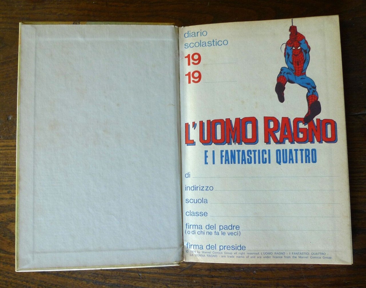 L'UOMO RAGNO E I FANTASTICI QUATTRO.DIARIO SCOLASTICO,1979 Malipiero[fumetti