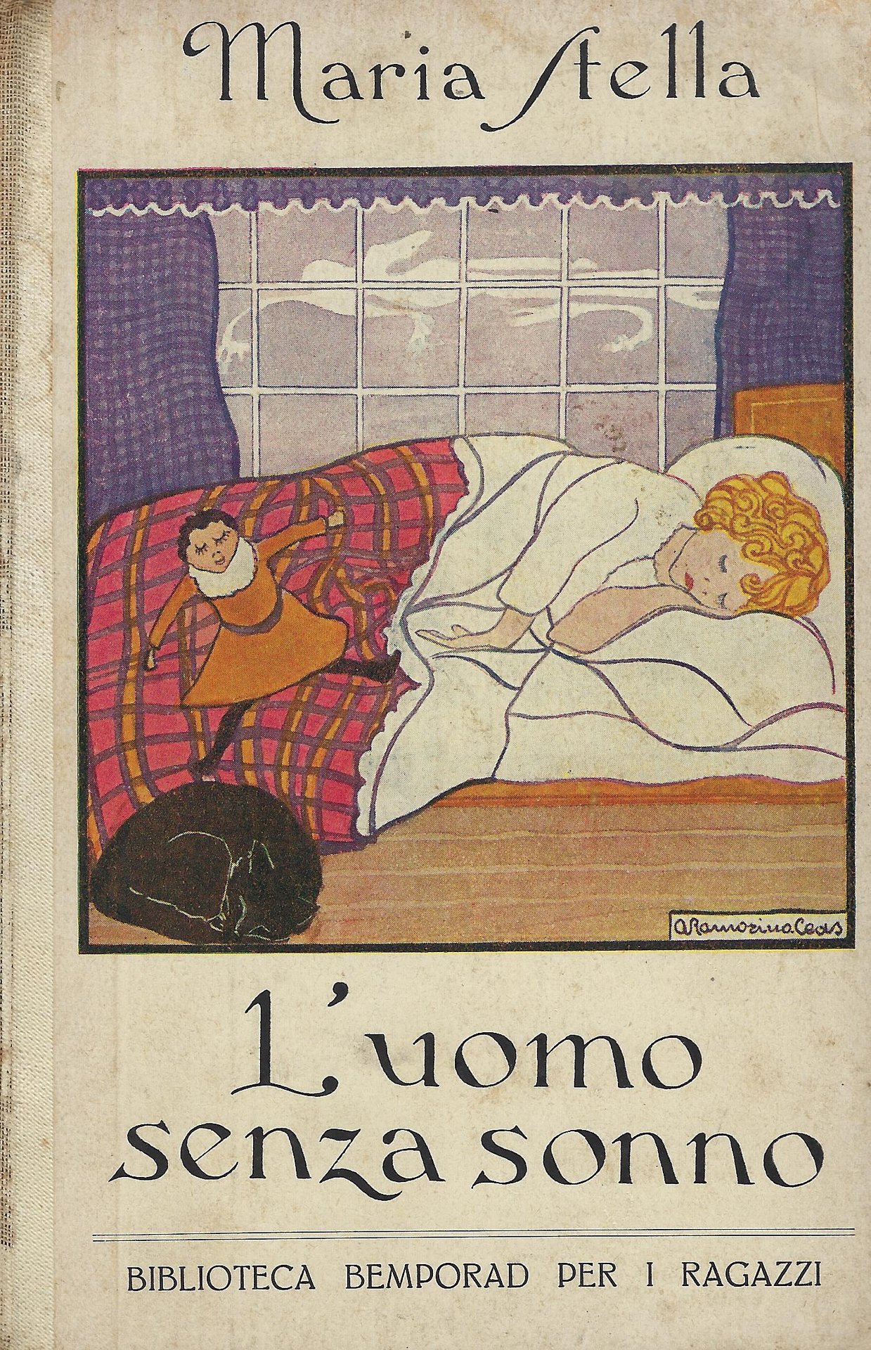 Bemporad & figlio, 1922. Collana Biblioteca Bemporad per i ragazzi. Con illustrazioni di A. Ramorino Ceas, 183 pp. copertina rigida Mediocre (Poor) dorso staccato dalla legatura (allentata su alcune parti) leggibilità perfetta, nessuna pagina mancante.