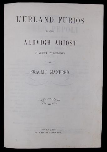 LUrland Furios d mssir Aldvigh Ariost tradut in Bulgnes da Eraclit Manfred
