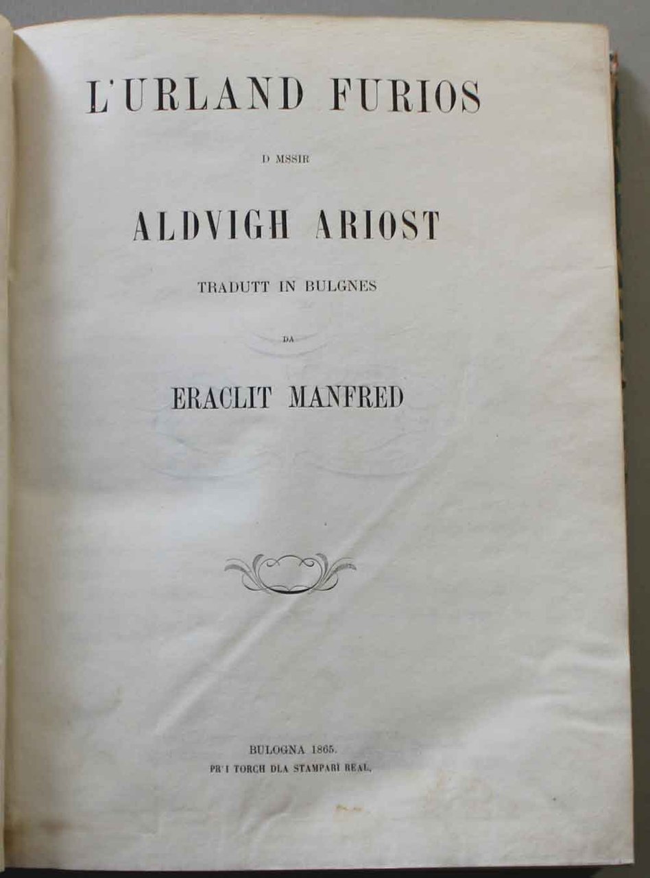 L' Urland furios d mssir Aldvigh Ariost tradutt in bulgnes da Eraclit Manfred (L'Orlando furioso di messer Ludovico Ariosto tradotto in bolognese)