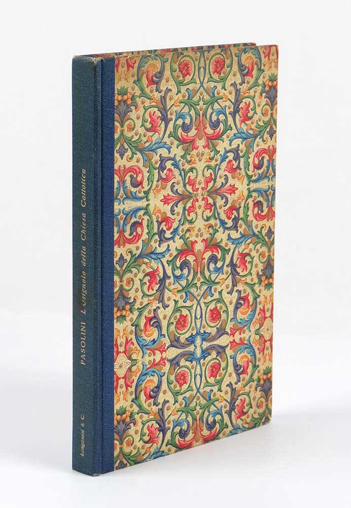 LIBROPrima edizione.Più che buon esemplare (parziale distacco della cerniera fermato professionalmente; carte normalmente brunite), completo della rara fascetta editoriale.Uscito come primo volume della «Collezione di poesie» diretta per Longanesi dal cugino di Pasolini, Nico Naldini, «L’usignolo della chiesa cattolica» è una sofferta e meravigliosa raccolta di versi composti nel periodo 1943-1949 che portano al cuore della complessa religiosità pasoliniana. Legate al periodo friulano (ma scritte in italiano) prima della partenza per Roma e coeve, nella gestazione, alla «Suite friulana» contenuta in «La meglio gioventù» (Sansoni, 1954), in questa silloge l’usignolo-poeta canta, con mistica sensualità, il proprio rapporto con Dio – insieme un incontro e un combattimento – attraverso il contatto con un cristianesimo popolare, semplice e immediato. Come dichiarò lo stesso Pasolini in una lettera inviata a Gianfranco Contini nel gennaio del 1947, il volume: «rappresenta quel me stesso ventunenne e ancora vergine, che ritornato a Casarsa dopo molto tempo, si era lasciato suggestionare da una specie di cristianesimo paesano, non senza trovare però nel suo Eros esasperato dolci ed equivoche fonti d’eresia» (cfr. A. Giordano, N. Naldini, «Pasolini. Le lettere», Garzanti, 2021, p. 547). E sono in effetti preghiere, queste poesie, scritte inizialmente in parte in italiano e in parte in dialetto – come dimostra il primo componimento della silloge, «Le albe», pubblicata nell’aprile 1944 sullo «Stroligut di cà da l’aga» con il titolo «Li albis» -, con una loro versione inviata da Pasolini a Contini già nel 1947, nella speranza di trovare un editore. Proposte da quest’ultimo a Vallecchi, la raccolta – che portava la dedica «A Gianfranco Contini con sottile amore de lonh», poi utilizzata in «La meglio gioventù» (Sansoni, 1954) - rimase tuttavia inedita fino all’autunno del 1957 quando Longanesi, grazie a Naldini, decise di pubblicarla all’interno della neonata collana «Collezione di poesie».