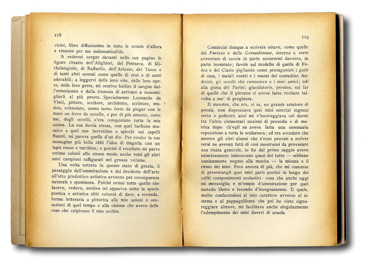 >in-16, pp. 260, brossura editoriale con sovracoperta figurata a colori conservata. Bella prima edizione di volume autobiografico che racconta l'infanzia dell'artista spesa Bombone, presso Rignano, tra i poggi e le colline del Valdarno. "... un libro nel quale, sullo sfondo di una rappresentazione vivacissima del mondo fine ottocento nella campagna toscana, balzano in rilievo pagine di grande poesia" (dalla seconda di copertina). Ottimo esemplare, piuttosto fresco e con la schedina bibliografica a cura dell'editore ancora conservata all'interno. Gambetti p. 452.