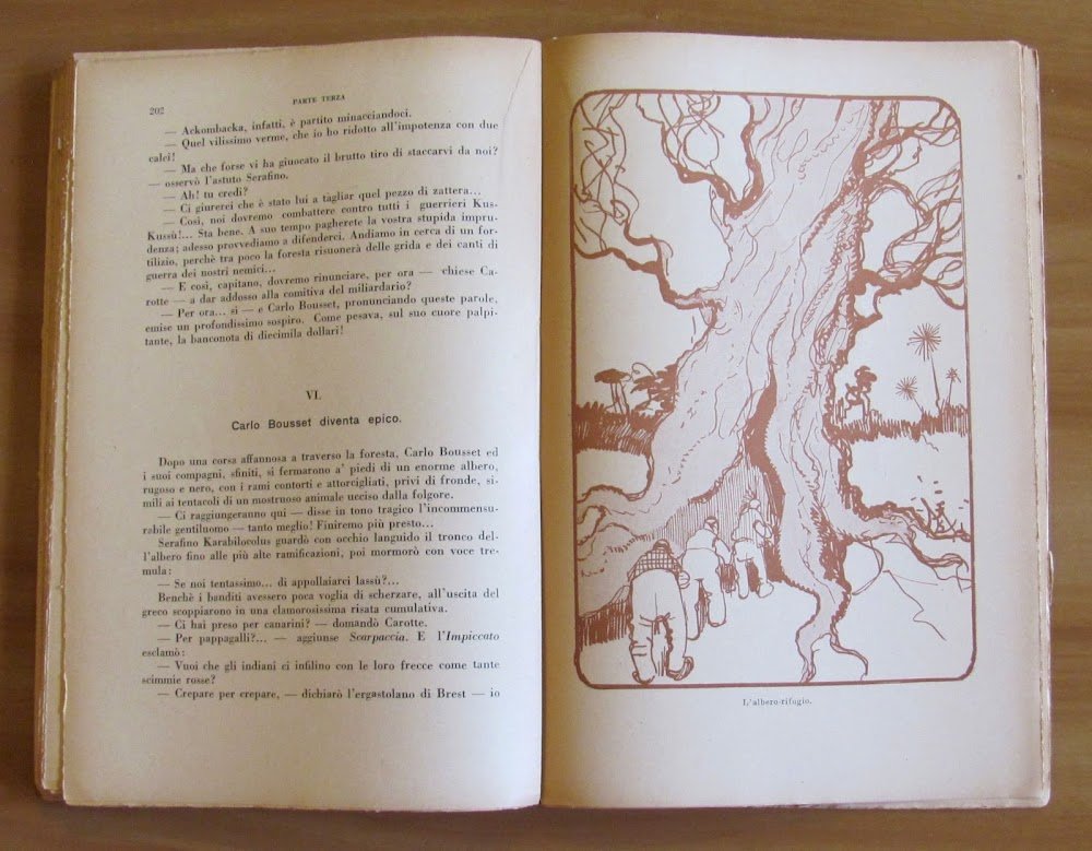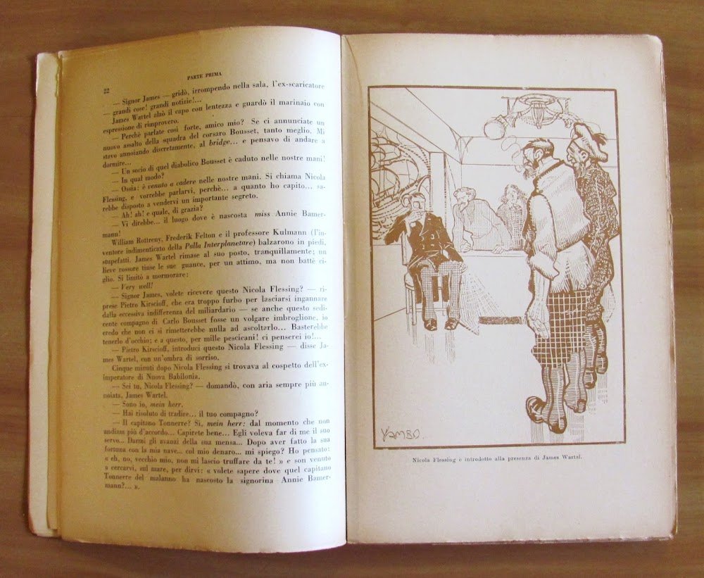 Seguito al "Re dei Mondi" e al "Fortunato per forza". 33 illustrazioni in tinta a piena pagina di Yambo. Editore Vallardi - Milano, I edizione 1926. Brossura editoriale con piccole mancanze e usure al dorso. Libro perfettamente legato con pagine freschissime e pulite. 17x25,5; pp.238 Raro e in Buonissimo stato. , Molto buono (Very Good)