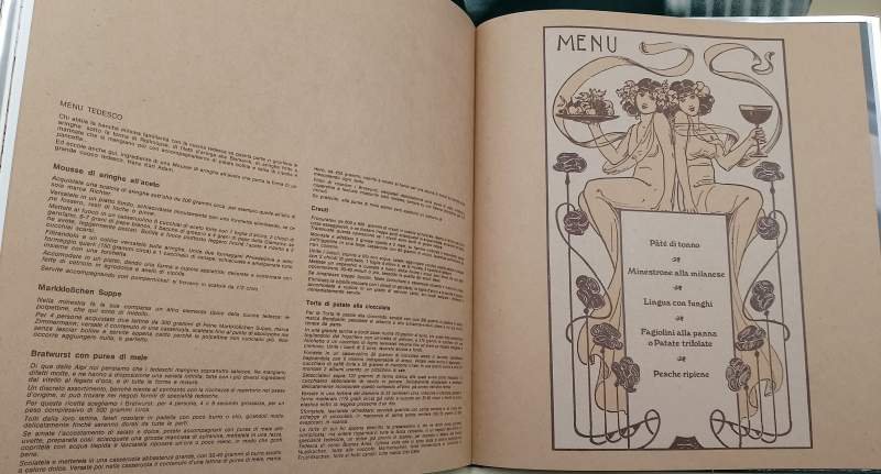 In 4', tela ed. con sovrac. e astuccio, pp. nn., ill. col. n.t., storia degli alimenti in scatol, alcuni menu' elaborati con cibo in scatola; leggero schiacciamento dell'astuccio, piccoli strappetti e segni d'uso alla sovrac., interno in buono stato. ***Due to bureaucratic reasons, books dated over 70 years old cannot be immediately exported, please contact us before placing the order.***