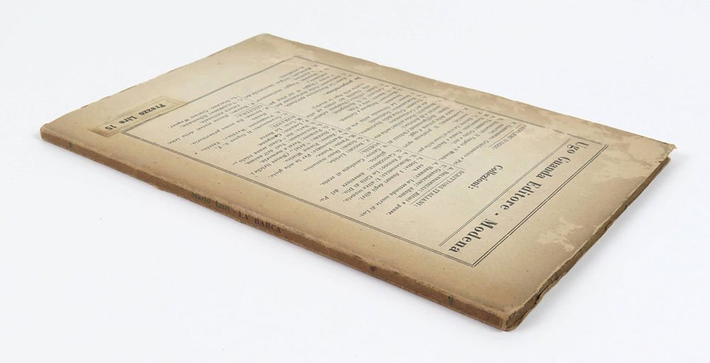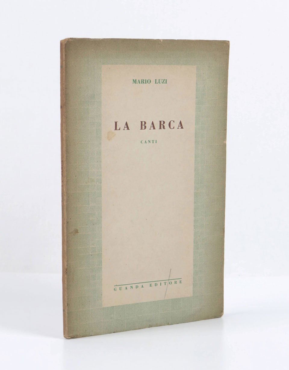 LIBROEdizione originale.Esemplare in buone condizioni di conservazione.Opera prima tirata in sole 300 copie numerate nella raffinata collezione di poesia dell’appena nato editore modenese Guanda, «prima verifica di un ventenne poeta nutrito di avide e spasmodiche letture: in questo libretto le “Confessioni” di Sant’Agostino possono benissimo incrociarsi con la “Saison en enfer” di Rimbaud e un primo accostamento a Hölderlin convive con una affettuosa lettura di poeti del “Frontespizio”, come Betocchi e Papi». Mario Luzi proveniva da studi e letture inconsuete per un poeta: «La mia ambizione era la filosofia. Al liceo spesso marinavo la scuola per andare a leggermi in pace i miei filosofi, specialmente Sant’Agostino di cui il decimo libro delle “Confessioni” doveva poi diventare il mio breviario per tanti aspetti. Fu quello l’unico periodo nel quale frequentai le biblioteche. Lessi allora anche taluni scrittori moderni come Mann (“Disordine e dolore precoce”) e Proust. Soprattutto il “Dedalus” di Joyce mi colpì in pieno petto. Mi accorsi che i veri filosofi del nostro tempo erano alcuni grandi scrittori e la vocazione infantile per la poesia si confortò» (Acrocca, Ritratti su misura di scrittori italiani, Venezia 1960, p. 252). Filosofo e francesista — come dimostrano i primi libri non poetici (“L’opium chrétien”, Guanda 1938, ovvero rielaborazione della tesi di laurea su François Mauriac; “Un’illusione platonica”, Rivoluzione 1941) — fondamentale per Luzi fu l’ambiente fiorentino, approcciato dal lato universitario (Bigongiari, Macrì, Bo,Traverso) prima che da quello delle «Giubbe rosse». L’esordio poetico fu assai tormentato: di una prima, intensa produzione 1934-1935 — i cui autografi, perduti, sono riemersi nel 2001 e pubblicati nel 2003 (ma vedi anche l’edizione della “Barca” con gli autografi, a cura di Petrini, 2005) — Luzi selezionò ventun componimenti da sottoporre all’editore modenese Ugo Guandalini, che — su modello gobettiano — aveva appena fondato una minuta ma assai vivace casa editrice: «Guanda mi risponde con una lettera lusinghiera, dice di aver esclamato il classico: ecco un poeta. E facendo proposte e accettando docilmente controproposte vuol pubblicare. Io sono tormentatissimo esasperato dal fatto che le poesie non sono tutt’e venti ma pochissime solo di mia piena soddisfazione [.] A Guanda non piaceva il titolo La barca, ma io ho insistito su quello. È significativo e appartiene a un oggetto reale senza essere fraseologico e troppo apertamente logico come lo sono anche i migliori e più concreti di questi ultimi anni, “Realtà vince sogno”, “Sentimento del tempo”. Il titolo insomma è lirico, almeno quello» (lettera a Bigongiari, agosto 1935, in Verdino cit., p. 1318). «La barca» venne ben recepito sia dai colleghi già affermati sia dai coetanei (memorabile la recensione del giovane Caproni sul «Popolo di Sicilia» del 29 novembre 1935). A riguardare oggi il catalogo, fu probabilmente il primo titolo in un certo senso epocale pubblicato dall’editore, in quel prototipo di collana poetica — incunabolo della poi celebre «Fenice» — che timidamente affiancava la collezione ammiraglia dei «Problemi d’oggi». Ospitò anche l’esordio di Petroni («Versi e memoria», 1935) e la seconda raccolta di Gatto («Morto ai paesi», 1937).Bibl.: Verdino, Luzi: L’opera poetica, I Meridiani, p. XIII