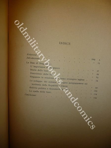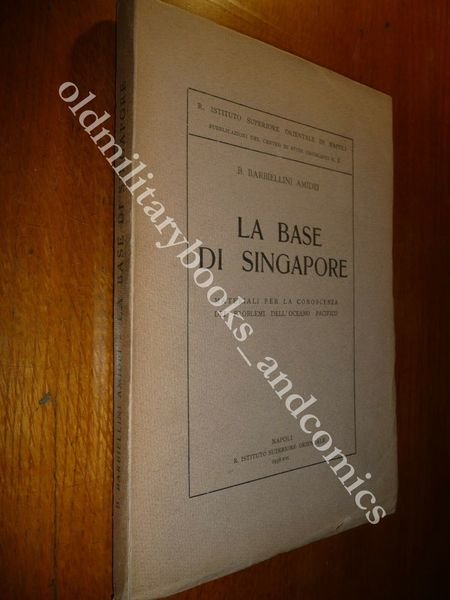 DESCRIZIONE: Regio Istituto Superiore Orientale Napoli 1938 br. ed. pp. 137 con ca. 30 ill. b/n f.t. e carte anche rip. in 8°. La base di Singapore, la storia, descrizione, Singapore in relazione al sistema strategico inglese etc. CONDIZIONI: Ottime/Perfette, parzialmente INTONSO. PESO / WEIGHT: 438 gr. without package