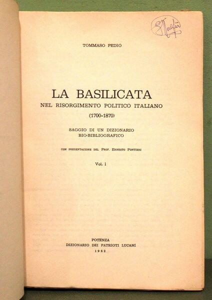 La Basilicata nel Risorgimento politico italiana (1700-1870). Saggio di un dizionario bio - bibliografico, vol. I