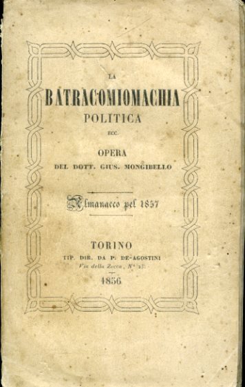 La Batracomiomachia politica ovvero ministri, deputati, giornali e giornalisti italianissimi che si dipingono l'un l'altro al naturale. Almanacco pel 1857