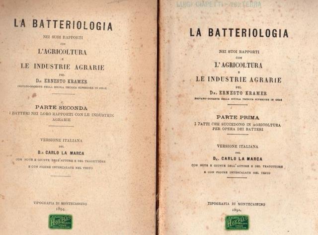 La batteriologia nei suoi rapporti con l'agricoltura e le industrie agrarie. Parte prima: I fatti che succedono in agricoltura per opera dei batteri. Parte Seconda: I batteri nei loro rapporti con le industrie agrarie.