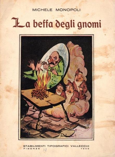 La beffa degli gnomi, prima edizione 1949, pp. 68, formato 15,5 x 21,5.<BR>Copertina morbida illustrata con titoli in nero e rosso al piatto anteriore e in nero sul dorso. Fiaba in tre atti Illustrata da F. Frabasile. All'interno presenti otto tavole illustrate a colori. <BR>Ottime condizioni. <BR>