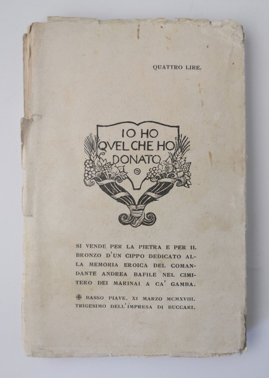 LA BEFFA DI BUCCARI di Gabriele D'Annunzio con aggiunti la canzone del Quarnaro, il catalogo dei trenta di Buccari, il cartello manoscritto e due carte marine.