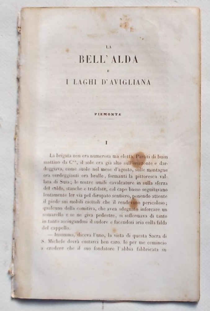 In 8° (cm. 22 x 13); pagg. (21); numerate da 699 a 719; con 1 tavola f.t. della Sacra di San Michele incisa da S. Ralbiani; brossura muta moderna; bruniture e qualche macchia. G. ** Stralcio prelevato materialmente dal primo volume della edizione originale di "Tradizioni italiane" la monumentale e rara opera diretta da Angelo Brofferio pubblicata in quattro volumi, ciascuno di quasi 1000 pagine, dal 1847 al 1850. Tradizione piemontese.