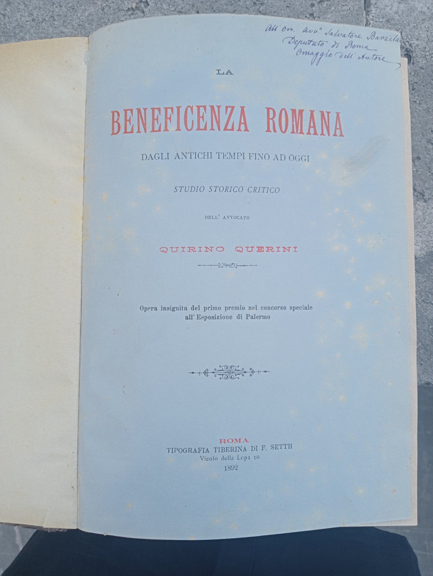 La beneficienza a Roma dagli antichi fino ad oggi. Studio storico critico
