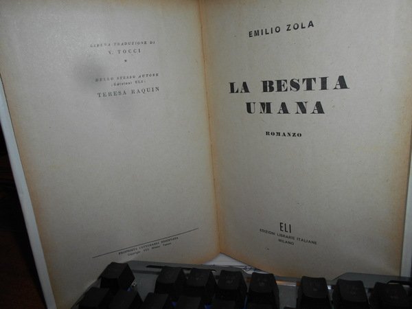 EMILIO ZOLA. Milano, Giachini Edizioni, 1954. La Bestia Umana. Prima edizione. In-8° piccolo, tela edit. con sovracopertina ill. a col. 226, (1) pp. Lievi segni del tempo (carta ingiallita). Neg. lett. mod. mob. M