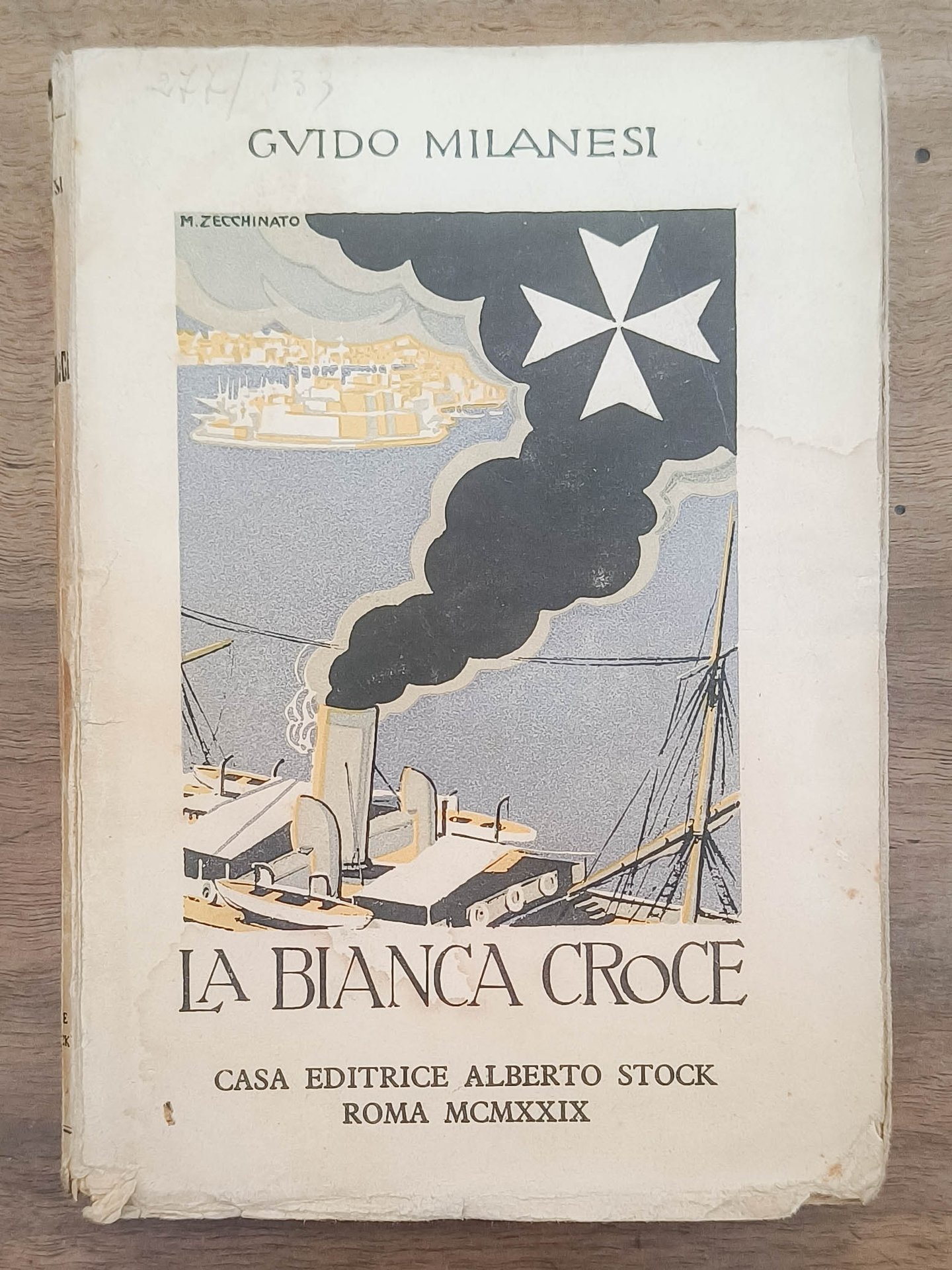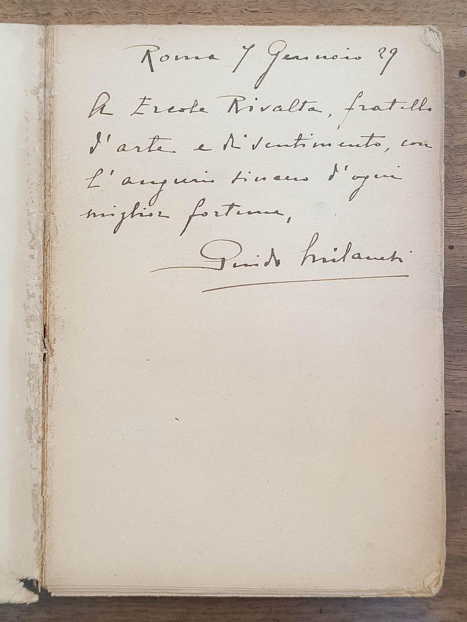 La bianca croce, Roma, Stock, 1929. Prima edizione. Cm 19,5. Pp. 332 (2). Brossura editoriale illustrata da M. Zecchinato. Segni d'usura alla legatura, prime pagine leggermente staccate. Dedica autografa dell'autore "A Ercole Rivalta, fratello d'arte e divertimento con l'augurio sincero d'ogni migliore fortuna" datata "Roma 9 gennaio 1929".