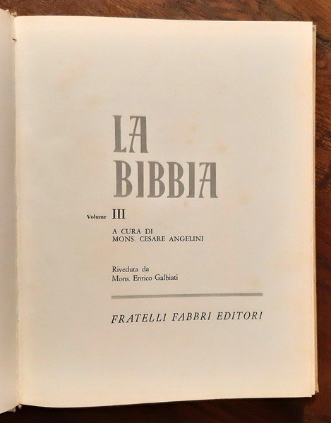 La Bibbia a cura di mons. Cesare Angelini; riveduta da mons. Enrico Galbiati.