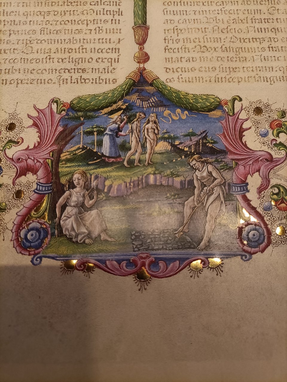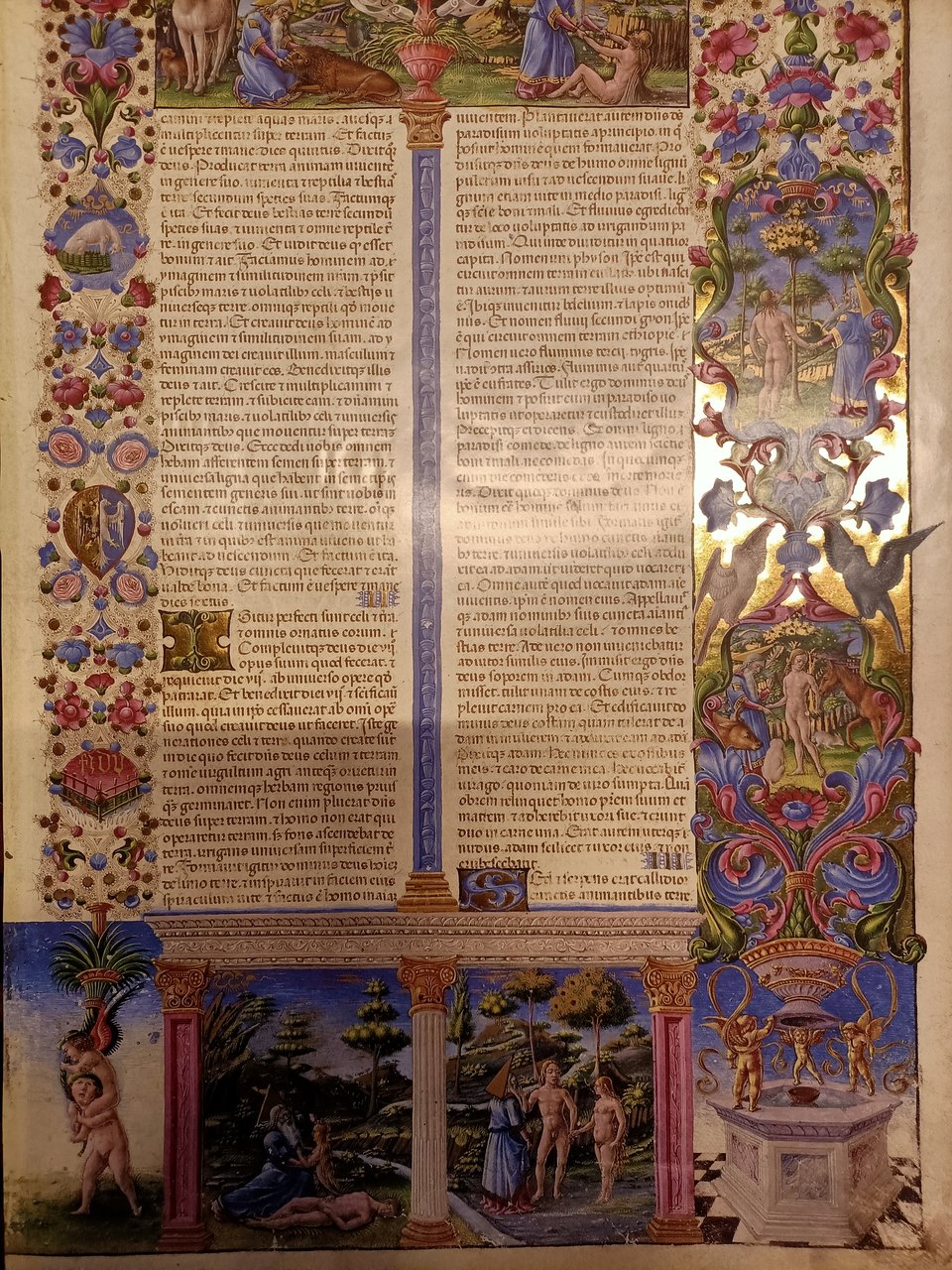 La Bibbia eseguita per Borso d'Este, Duca di Ferrara, tra il 1455 e il 1461 costituisce il capolavoro assoluto della miniatura italiana del Rinascimento. Per la prima volta in questo codice l'illustrazione libraria acquisisce il nuovo linguaggio della Rinascenza volgendo a nuova razionalità le fantasie e le eleganze tardogotiche. Alle sue pagine posero mano i maggiori artisti dell'epoca, decisi a creare un'opera destinata a tramandare nei secoli lo splendore della corte estense e la munificenza del Duca. I miniatori, tra i quali spiccano i nomi di Taddeo Crivelli e Franco dei Russi, dipinsero ogni carta del manoscritto nel rect o e nel verso , guardando alle regole nuove della prospettiva giunte dalla Toscana e sfoggiando la meticolosa attenzione al vero tipica dell'arte fiamminga. Stupendi sono anche i fregi, ornati con una eccezionale varietà di motivi mitologici, animalistici e araldici. Nel suo insieme la Bibbia di Borso d'Este costituisce una eccezionale galleria d'arte rinascimentale , la cui ricchezza non trova paragone in nessuna altra testimonianza artistica coeva