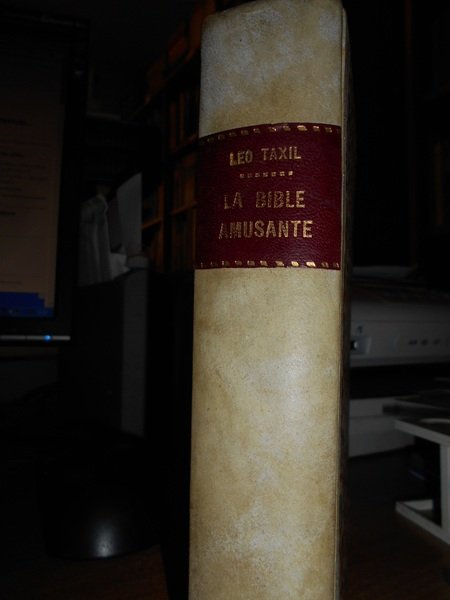 Léo, Taxil. Paris, Librairie P. Fort, S.d. (da prefazione 1897). LA BIBLE AMUSANTE. Edition complète de 1903-1904. Donnant les Citations textuelles de l' Ecriture Sainte. In-16° grande, m.pergamena coeva con angoli, titolo in oro entro tassello al dorso. (iv), iv, 814 con 400 dessins comiques. Bell' esemplare con firma di ex Libris a pag, i. Neg. esot. mob. 51