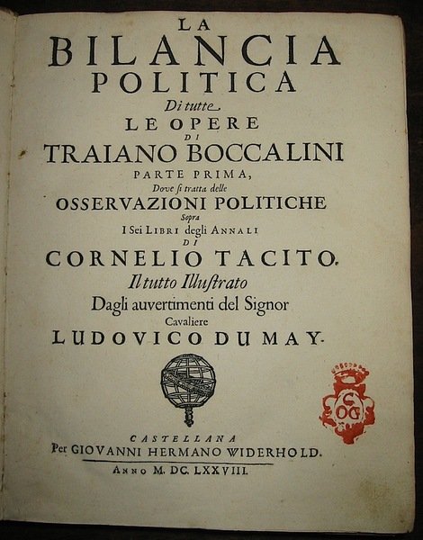 La Bilancia politica di tutte le opere. Parte prima, dove si tratta delle osservazioni politiche sopra i Sei Libri degli Annali di Cornelio Tacito. Parte seconda, nella quale si comprendono le Osservationi, et Considerationi politiche sopra il primo libro delle Storie di Cornelio Tacito & sopra la Vita di Giulio Agricola scritta dal medesimo Auttore. Parte terza, contenente alcune Lettere politiche et historiche del medesimo Auttore ricourate, ristabilite, e raccomodate dalla diligenza e cura di Gregorio Leti