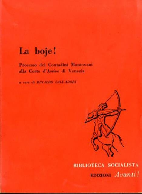 291 p. ; 17 x 10 cm. Biblioteca socialista, 29. Questo libro riporta fedelemente il dibattimento e le conclusioni del processo intentato contro 22 lavoratori e organizzatori dei contadini mantovani, ch’erano stati alla guida del grande sciopero agricolo che passò alla storia col nome "la boje", che si concluse alla Corte d'Assise di Venezia il 27 marzo 1886. Il processo durò quaranta giorni (iniziò il 16 febbraio) e tutti gli imputati furono assolti dopo che avevano subito circa un anno di carcere preventivo. L’accusa era grave ed assurda: erano stati accusati di "… aver tra di loro e con la Società provinciale di Mutuo soccorso e la Federazione dei lavoratori di Mantova, sia con statuti, regolamenti e tariffe; sia con discorsi in adunanze ufficiali e con scritti; con eccitamenti e scioperi, attentato alla sicurezza interna dello Stato, mediante atti aventi per oggetto di portare devastazioni, strage e saccheggio in vari comuni della provincia di Mantova". Quel processo rappresentò un capitolo importante della storia del movimento contadino e proletario del nostro Paese; in esso vennero registrati i primi passi di quel movimento che avrà in seguito prospettive e ruoli di notevole importanza nella nostra storia sociale. In quegli anni si verificò la presa di coscienza delle masse dei lavoratori della terra; dei primi conflitti sociali in un contesto dove l’agricoltura era investita da una grave crisi. Prima di allora le agitazioni che avvenivano nelle campagne in varie parti del paese, erano da considerarsi fatti sporadici, irrazionali, delle "jaquerie". . Brossura editoriale, coperta illustrata in cartoncino flessibile colorato rosso e sovraccoperta illustrata (b/n). Profili della sopraccoperta logorati con mancanze. Alla coperta e ai tagli leggeri segni del tempo. Pagine interne leggermente ingiallite, per il resto libro integro. Codice libreria 8049.