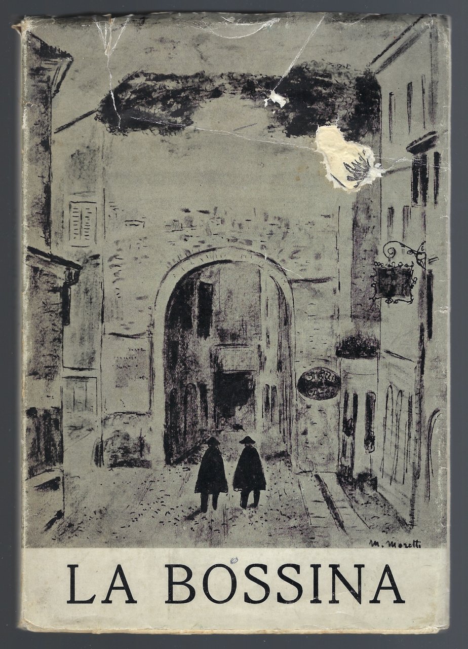 Sovraccoperta illustrata in bianco e nero, con strappi, pieghe, uno strappo sempre al piatto anteriore e tracce di polvere.
