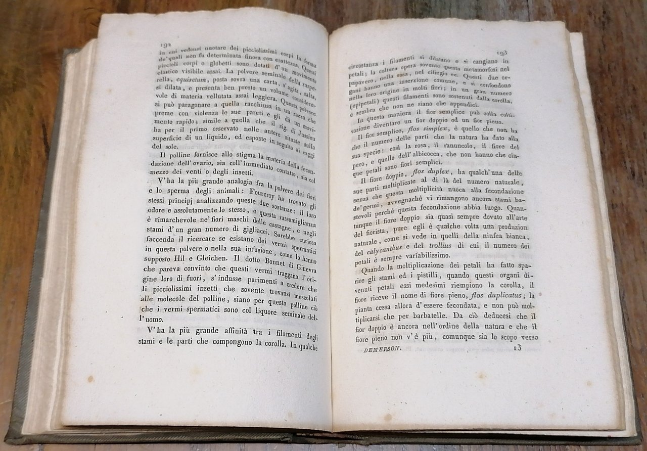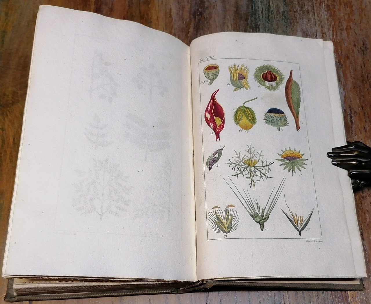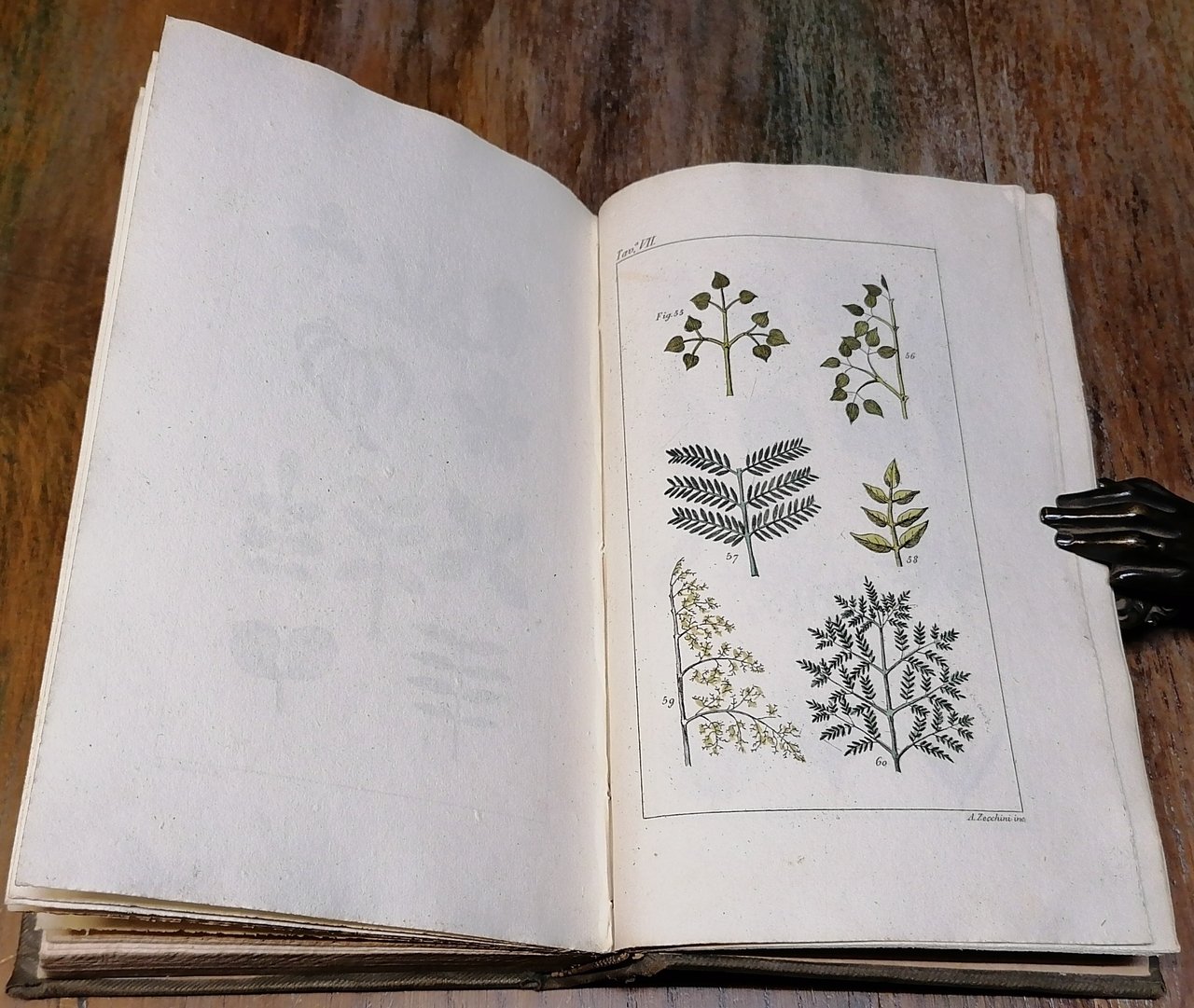 (Botanica - Scienze naturali) In 8°, legatura coeva in piena percallina verde oliva con titolo e filetti impressi in oro al dorso, pp. 429,(5), con XVI tavole incise in rame ed acquerellate a mano fuori testo. Piccola scheda d'archivio in carta, di vecchia libreria antiquaria bolognese, applicata al risguardo anteriore. Leggere tracce del tempo alla legatura, peraltro volume molto ben conservato.