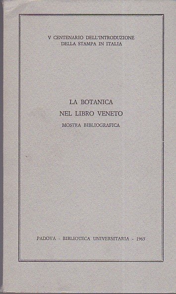 In-8°, pp. 57, brossura editoriale. Alcune tavv. in b.n. f.t. Buon esemplare. Sono descritti 151 libri botanici impressi in Veneto in antico. Introduzione di Angela Zanini. Pubblicazione per il V centenario dell'introduzione della stampa in Italia.