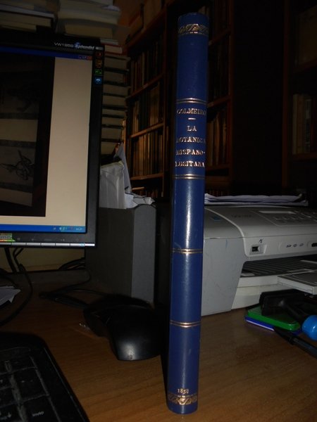 Por Don Miguel Colmeiro. Madrid, Imprenta Y Estereotipia de M. Rivadeneyra, 1858. La Botánica y los botánicos de la Península Hispano-Lusitana. Estudios Bibliograficos y Biograficos. Edizione originale. In-8° grande, m. pelle con grandi angoli, fregi e titolo in oro al dorso, copertine originali conservate. X, (1), 216 pp. Raro perfetto esemplare. Uff. C - III - 5