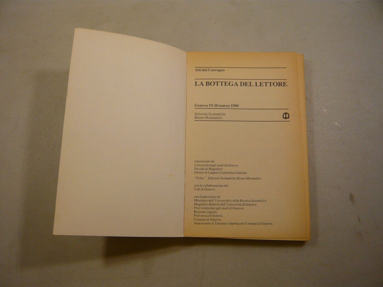 Atti del convegno Genova 19-20 marzo 1990LA BOTTEGA DEL LETTOREEdizioni Scolastiche Bruno Mondadori, Milano, 1990Brossura, 26x17cm, pp.207Peso:350g