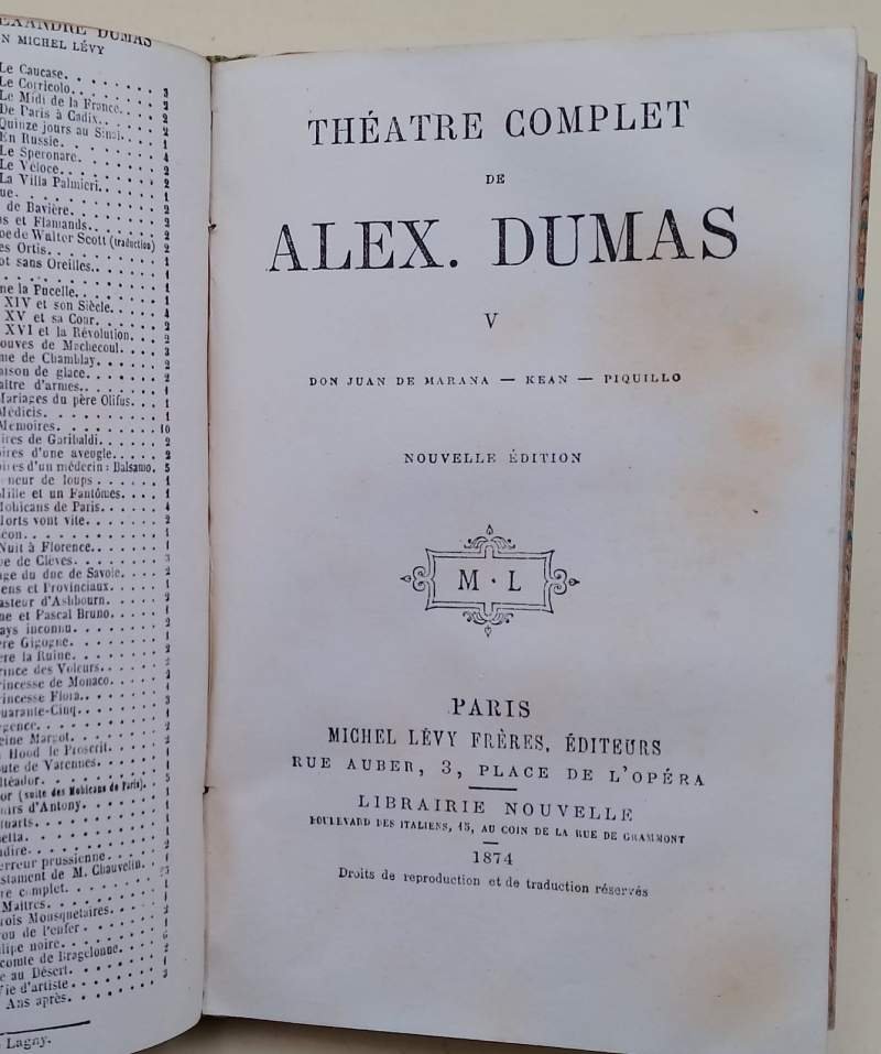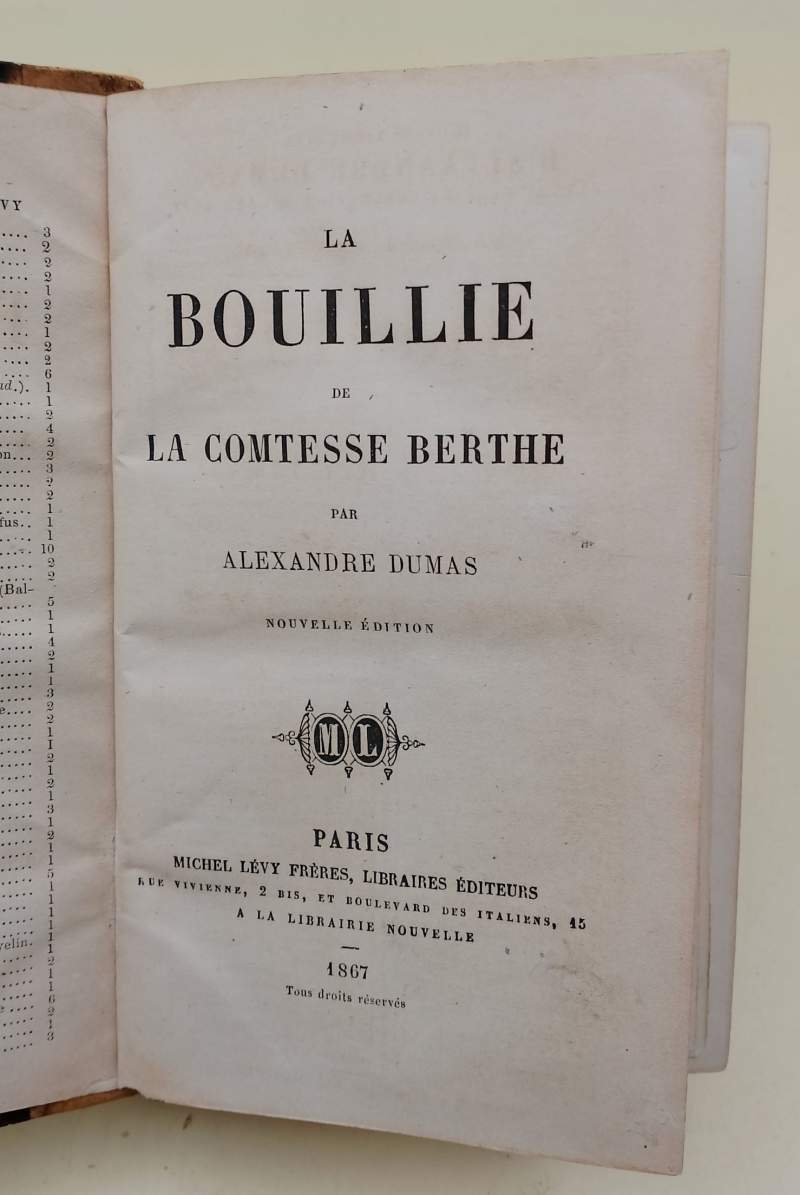 LA BOUILLIE DE LA COMTESSE BERTHE/THEATRE COMPLET DE ALEX. DUMAS- V-Don juan de Marana-Kean- Piquillo-2 VOLL. IN 1(1867/1874))