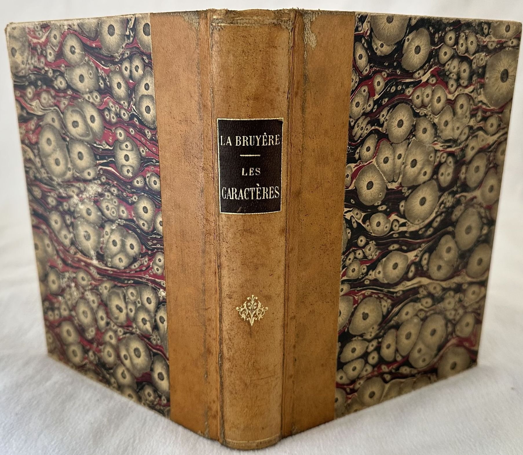 Edizione di fine ottocento o inizi novecento di questa celebre opera del saggista e moralista francese Jean de La Bruyere (1645-1696). L'opera apparve per la prima volta nel 1688 scatenando consensi e molte polemiche. A seguire la traduzione francese dell'opera di Teofrasto. Introduzione su Jean de la Bruyere. Ritratto di Bruyere in antiporta e alcune incisioni a piena pagina all'interno. In ottime condizioni. Copertina in mezza pelle con titolo in oro su tassello al dorso in ottime condizioni generali con lievi usure ai margini e dorso. Legatura in ottime condizioni. All'interno le pagine si presentano in ottime condizioni con rare fioriture. In 8. Dim. 19,5x14,5 cm. Pp. 450+(6).Edition of late 19th century or early 20th century of this famous work by the french essayer and moralist Jean de La Bruyere (1645-1696). The work appeared for the first time in 1688 provoquing different polemics. Then the french translation fo the work by Teofrasto. Introduction about Jean de la Bruyere. Portrait of Bruyere in the frontspice and different engravings inside. In very good conditions Half leather cover with gilted title and decorations in the spine in very good general conditions lightly worn in the extremities. Binding in very good conditions. Inside pages are in very good conditions with occasional foxings. In 8. Dim. 19,5x14,5 cm. Pp. 450+(6).