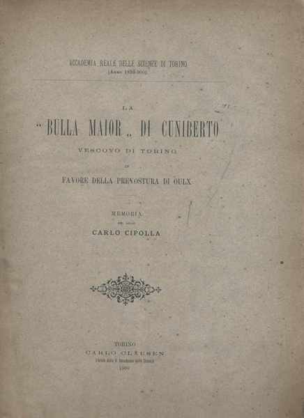 La "Bulla Maior" di Cuniberto vescovo di Torino in favore della prevostura di Oulx - Memoria del socio Carlo Cipolla