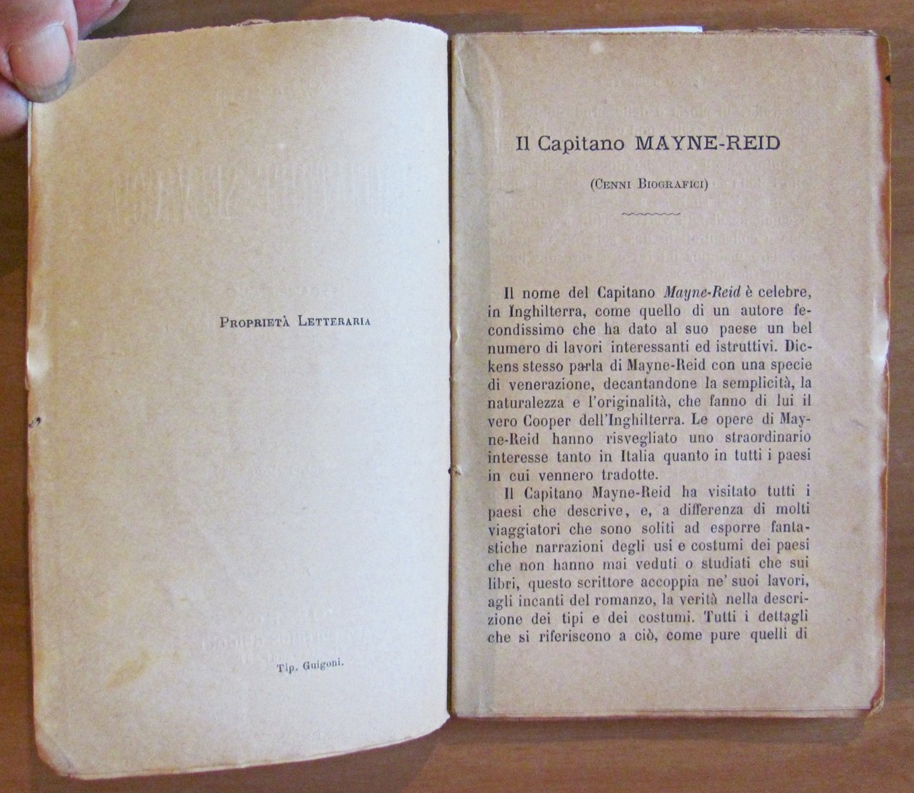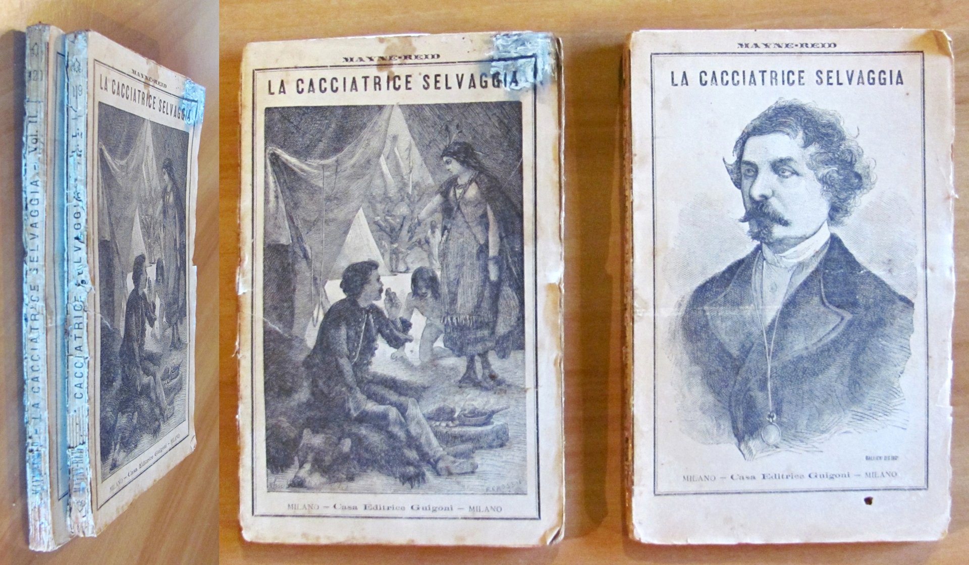 2 tavole in b/n a piena pagina in ciascun volume + biografia del Capitano Mayne-Reid. Casa Editrice Guigoni - Milano, 1884 Brossure editoriali con lievi imperfezioni del tempo ai dorsi, particolarmente al I volume che presenta anche un restauro all'angolino alto esterno della copertina. 10,5x16; pp.118 + 112. Buonissimo stato. , Molto buono (Very Good)