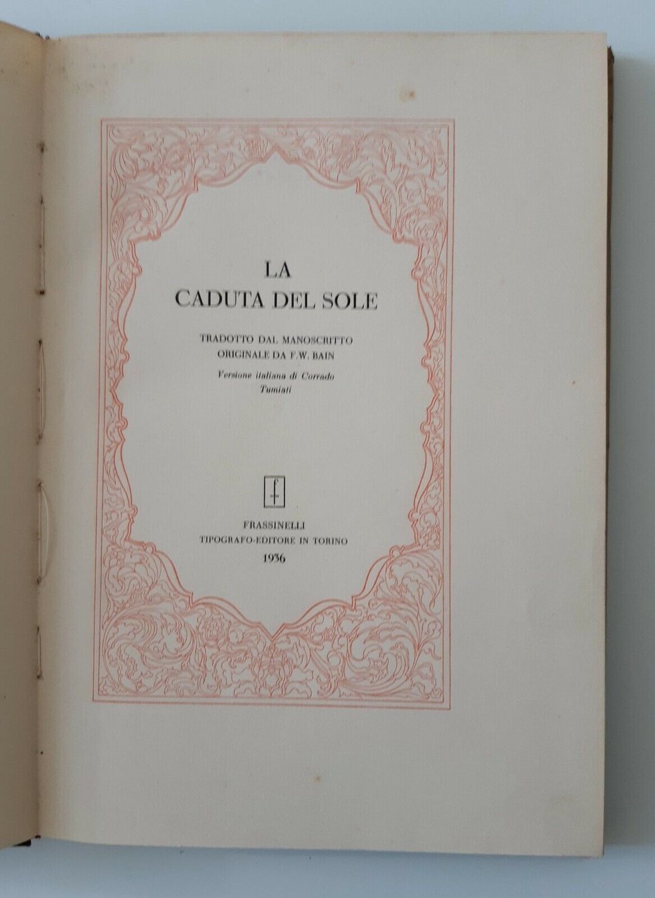 LA CADUTA DEL SOLE LEGGENDA INDU' F.W. BAIN FRASSINELLI 1936