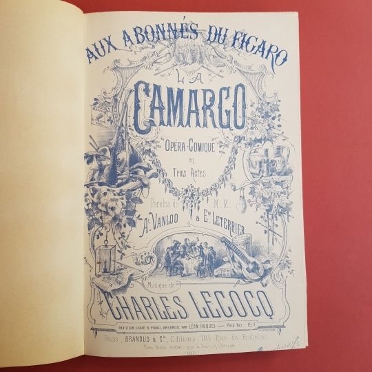 La Camargo. Opera comique en 3 actes. Paroles de Vanloo, Leterrier. Partition Chant & Piano