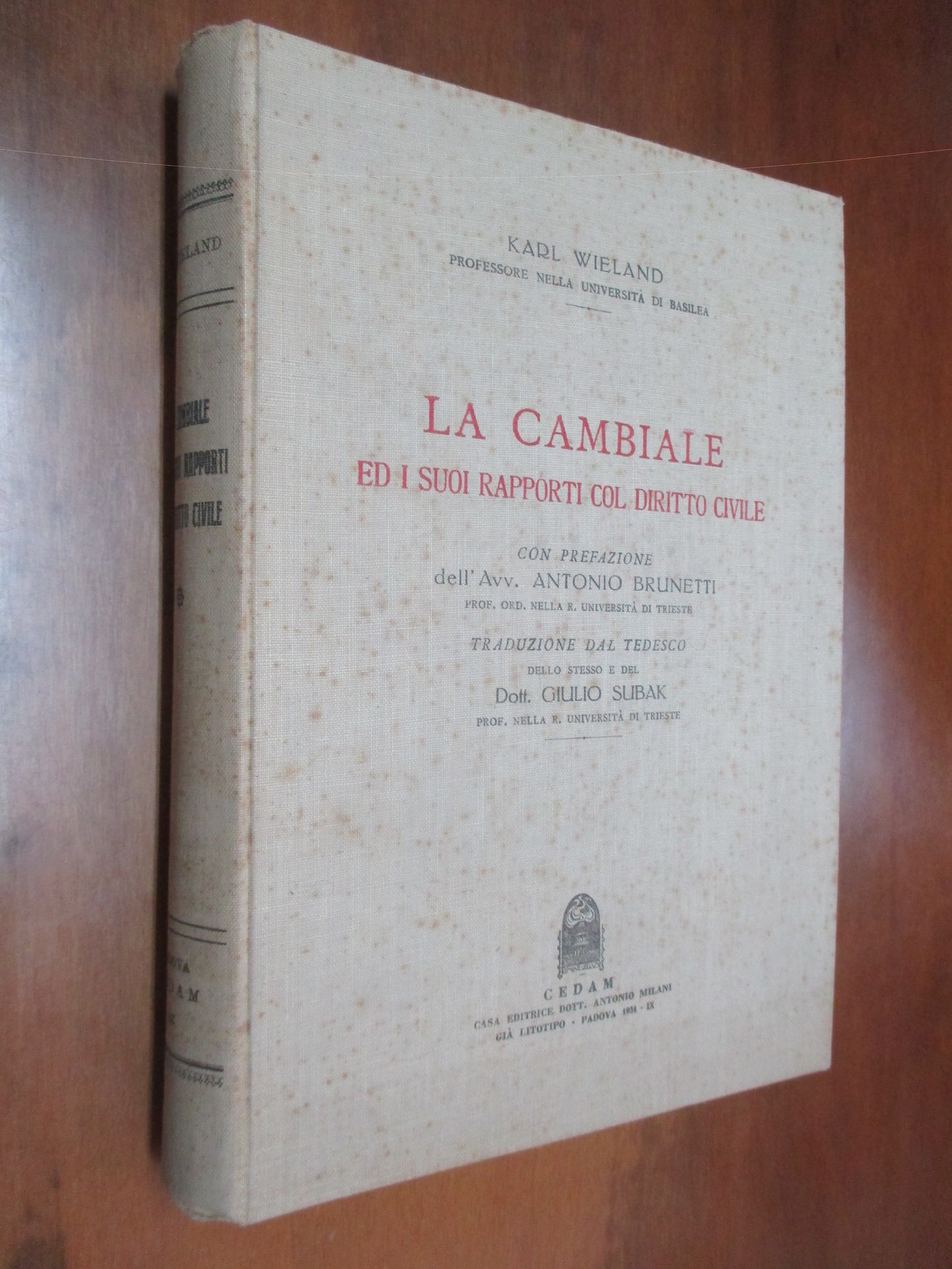 In – 8vo, legatura editoriale in tela con titoli al piatto e al dorso, pp. LVII, 318 ( 4 ). Prima edizione. Con prefazione dell’Avv. Antonio Brunetti. Traduzione dal tedesco di Giulio Subak
