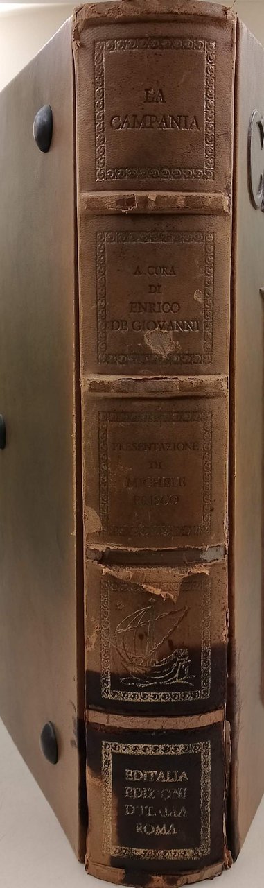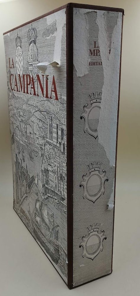 In folio, leg. in pelle, piatto anteriore con in rilievo il titolo e immagine del cavallino, oro e nervi al dorso, astuccio in m.tela. Spellatuire della carta in piu' parti al cofanetto, gora al taglio inf. dello stesso, lieve abrasione all'immagine in rilievo, fessura lungo la costa, abrasioni, bruniture al dorso, , tassello rettangolare ritagliato alla sguardia ant.,(foto), pagine interne in ottimo stato. Luogo di pubblicazione RomaEditore EditaliaAnno pubblicazione 1985Materia/Argomento Arte, Campania ***Due to bureaucratic reasons, books dated over 70 years old cannot be immediately exported, please contact us before placing the order.***