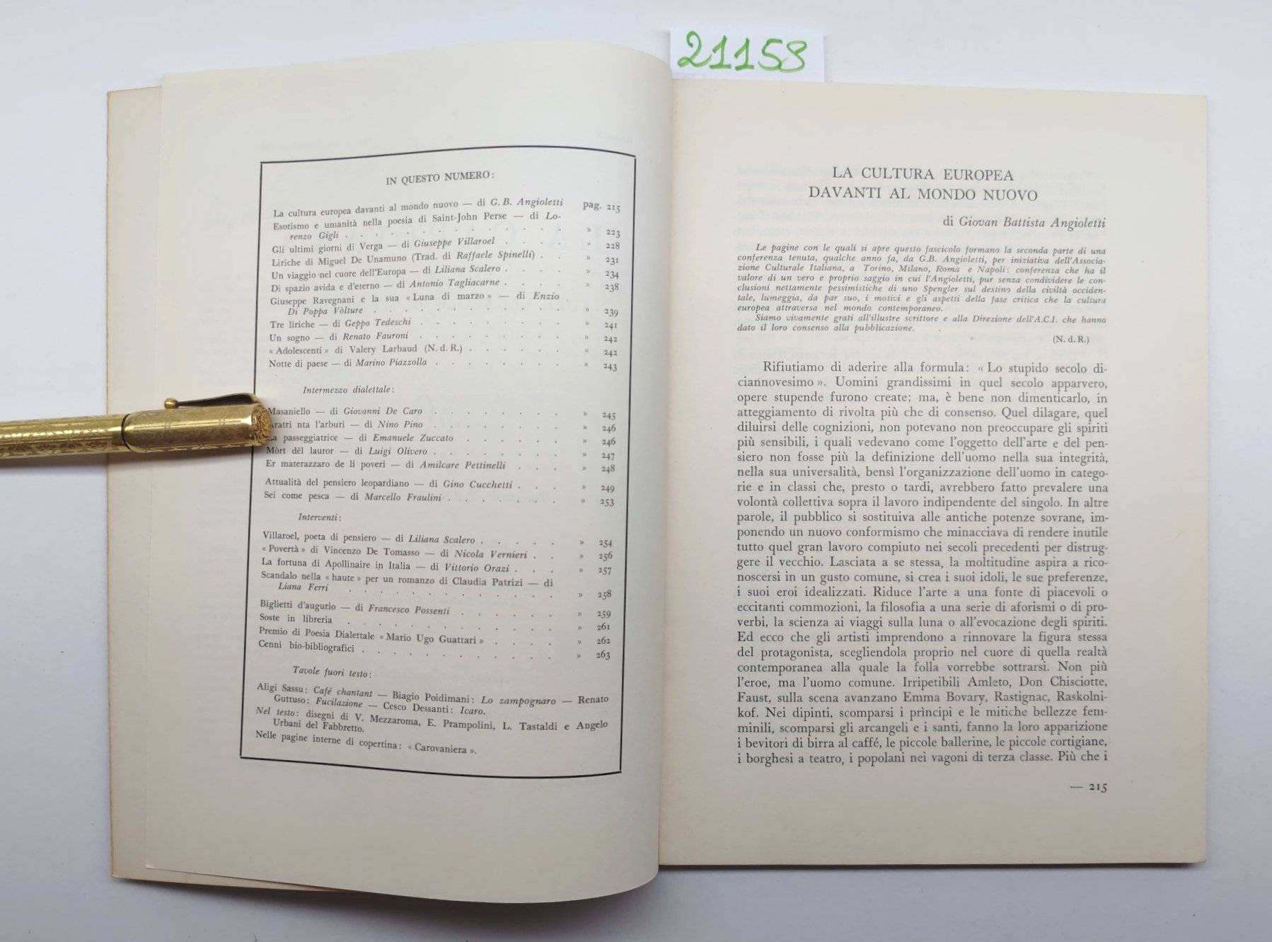 legatura morbida editoriale brunita ai margini con una macchia di umidità al margine interno tra piatti e dorso, dati leggermente bruniti con alcune sporcizie, interno in buono stato, lieve brunitura al margine esterno delle pagine, numero pagine da 215 a 263 dimensioni cm 23,5 * 17
