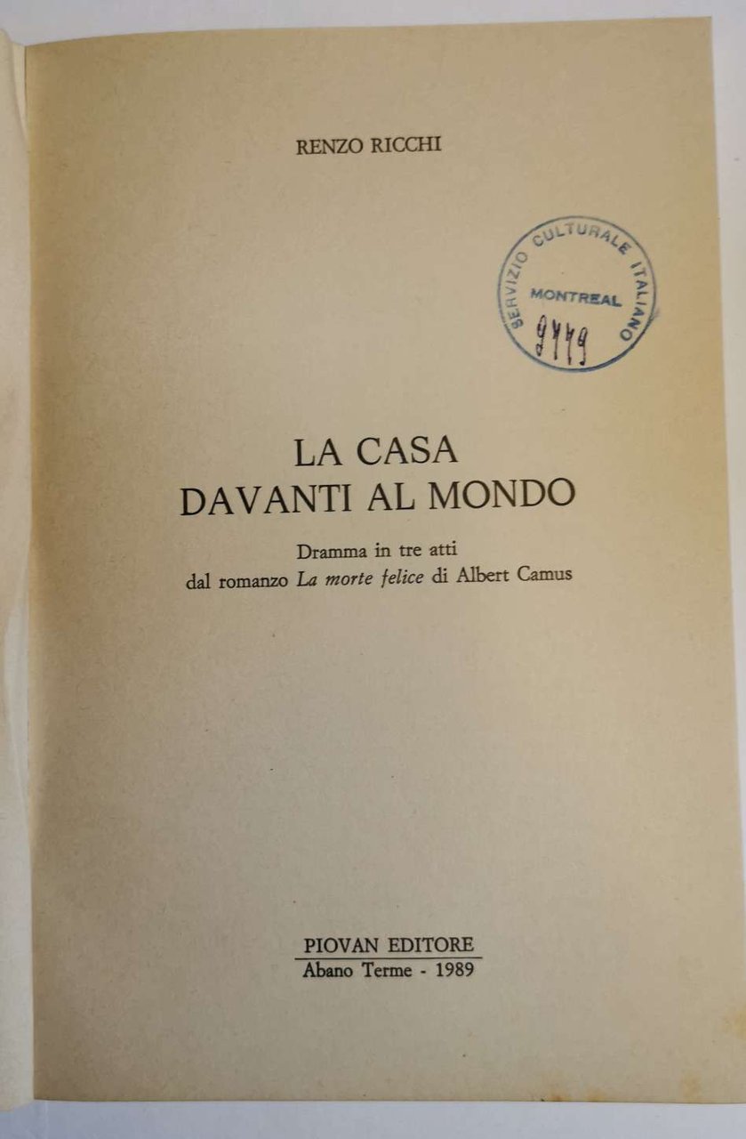 La casa davanti al mondo- dramma in tre atti dal romanzo La morte felice di Albert Camus