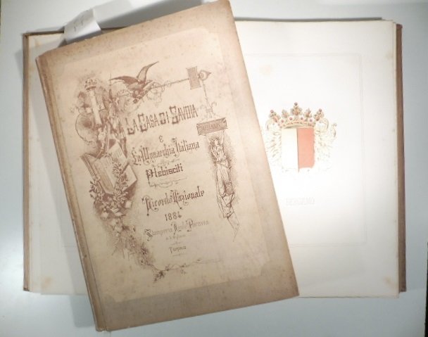 2 voll. in 4, pp. 217 + (1) + (2b); 318 + (2) + (2b) con 2 tavv. in bianco nero di medaglie commemorative e 21 tavv. f.t. protette da velina con grandi stemmi di citta' italiane in cromolit. Fioriture della carta. Cart. ed. con ill. al p. ant. Ed. di lusso di soli 300 esemplari. Testo riquadrato. Ed. orig. di quest'opera commemorativa con documenti relativi ai ducati di Parma e Guastalla, Modena, Reggio, Piacenza, province lombarde, province di Padova, Vicenza, Treviso e Rovigo, Venezia, Province toscane, napoletane, siciliane, delle Marche, dell'Umbria, etc.