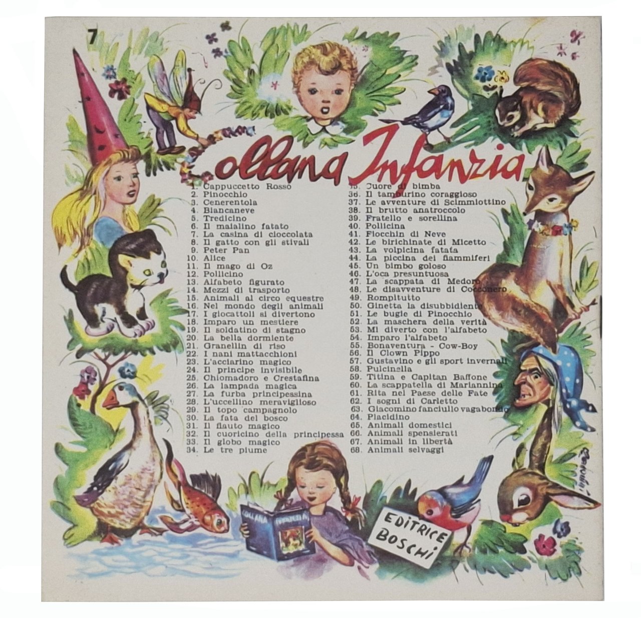 Collana Infanzia (7). Non datato ma, presumibilmente, risalente agli anni '50. Pagine: [12]. Formato: 16,5 x 16,5 cm circa. Ottimo esemplare. Privo di firme, scarabocchi o altri segni a matita o a penna. Copertina editoriale flessibile illustrata a colori. Con belle illustrazioni a colori.