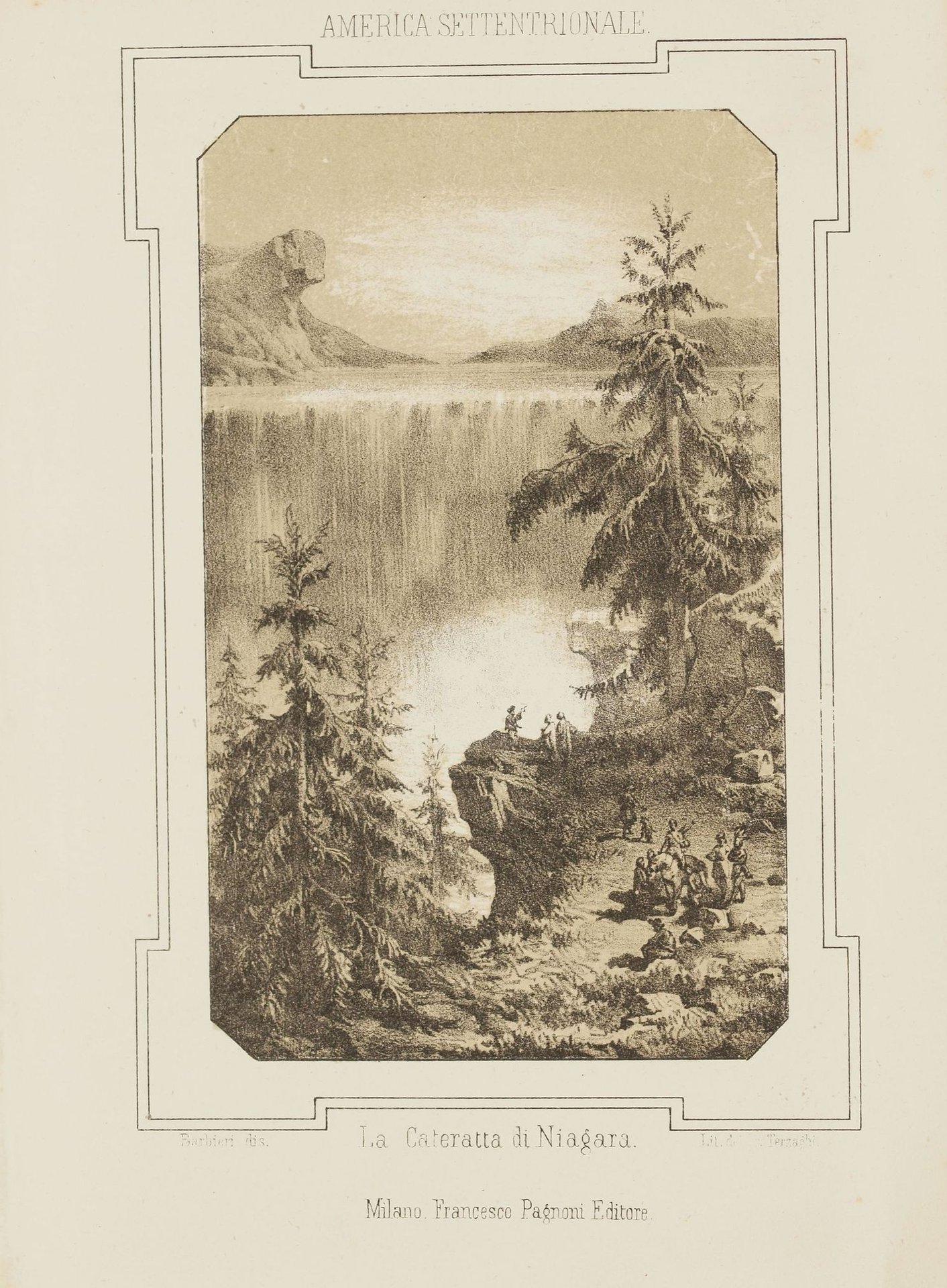Veduta delle Cascata del Niagara del 1860 circa. Data: 1860 circa Autore: Terzaghi su soggetto di Barbieri Atlante: Geografia storica moderna universale 1857-61 Tecnica: Litografia Dimensione del foglio: 24,3x17 cm Dimensione dell'incisione: 19x12,5 cm Condizioni: Buone condizioni. Alcune fioriture e rare fioritureVery beautiful view of Niagara Falls of 1860 circa. Author: Terzaghi on drawing by Barbieri Atlas: Geografia storica moderna universale 1857-61 Date: 1860 circa Technique: lithography Leaf Dimension: 24,3x17 cm (9.45x6.7 inches) Engraving Dimension: 19x12,5 cm (7.5x4.9 inches) Conditions: Good conditions. Some foxings.<BR><BR>